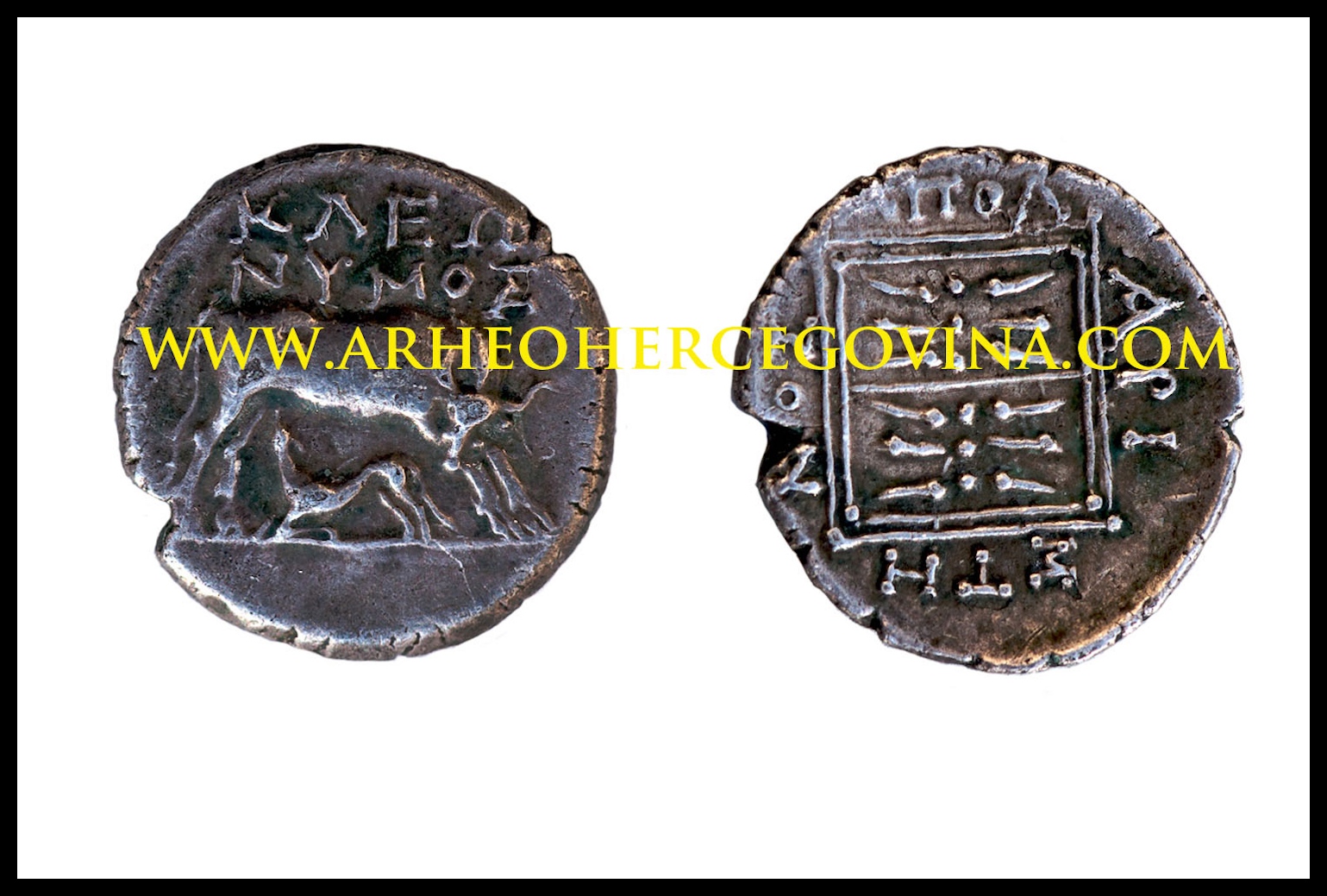 KΛΕΩΝΥΜΟΣ Published 26/07/2013 at 1539 × 1039 in KΛΕΩΝΥΜΟΣ Drahma Apolonije avers ΚΛΕΩΝΥΜΟΣ, revers ΑΡΙΣΤΗΝΟΣ / ΑΠΟΛ, 18 mm, 3.2 gr, nalazište Ljubuški, smještaj Franjevački muzej Humac