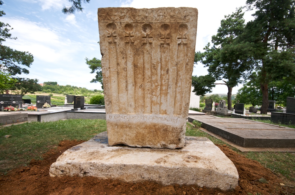 Ipak, bilig u Služnju dugo je skrivao tajnu. Ispod arkada s južne strane, koja je bila vjerojatno stoljeće-dva ispod zemlje, otkriven je natpis pisan humčicom (ćiriličnim pismom u Humskoj Zemlji). Natpis je uklesan u jednom redu i glasi: СИ БИЛЕГЬ УГРИНА ВРАТУШИЋА/Si bileg Ugrina Vratušića/Ovo (je) bilig Ugrina Vratušića. Slova su grafijom tipična za broćanske natpise, njih devet koliko ih je bilo do sada poznato (M. Šimić, Jezik natpisa na stećcima u Brotnju, Zbornik Brotnjo 4, Čitluk, 2006., 50-76). Karakterističan je oblika slova “V”, koji se na broćanskim natpisima piše s jednim trbuhom i dvije horizontalne haste. Dakle, natpis otkriva novo ime – Ugrin Vratušić, nepoznato u pisanim vrelima. U srednjovjekovnim natpisima u Brotnju spominje se šest rodova: Ivanović, Komlinović, Maršić, Rakojević, Vuković i Zloušić (M. Šimić, 68), kojima se sada pridružuje Vratušić. Prezime je s etimološke strane jasno, najvjerojatnije izvedenica od nadimka Vratuša, čovjek istaknuta (duga) vrata. Zanimljivo je da ne postoji u korpusu prezimena u Hrvatskoj, a najbliže su mu analogije Vratonja, Pazin, Vratonjić, Dubrovnik i Vratović, uglavnom Rijeka, Pula, Pazin, Buzet (F. Maletić, P. Šimunović, Hrvatski prezimenik 2, Zagreb, 2008., 579.). Ime Ugrin etnonim je od staroga naziva za Mađara, a susreće se u hrvatskoj antroponimiji (M. Šimundić, Rječnik osobnih imena, Zagreb, 1988., 348) i u srpskim pisanim izvorima (M. Grković, Rečnik ličnih imena kod Srba, Beograd, 1977., 200). Inače se u Brotnju u srednjem vijeku spominju i narodna i biblijska imena: Grgur, Ivaniš, Juraj, Radič, Radiša, Radovan i dr. (M. Šimić, 68). Rijedak je oblik bileg, jer na ikavskom području preteže bilig, u ekavaca beleg, a nađe se i oblik bjeljeg u Crnoj Gori. P. Skok misli da je riječ preuzeta iz avarsko-turkijskih jezika (s.v. biljeg, Etimologijski rječnik hrvatskoga ili srpskoga jezika 1, Zagreb, 1971., 150). I ovaj natpis svjedoči o ukorijenjenosti pučkoga naziva bilig u Humskoj zemlji odnosno Hercegovini umjesto umjetnoga stećak.