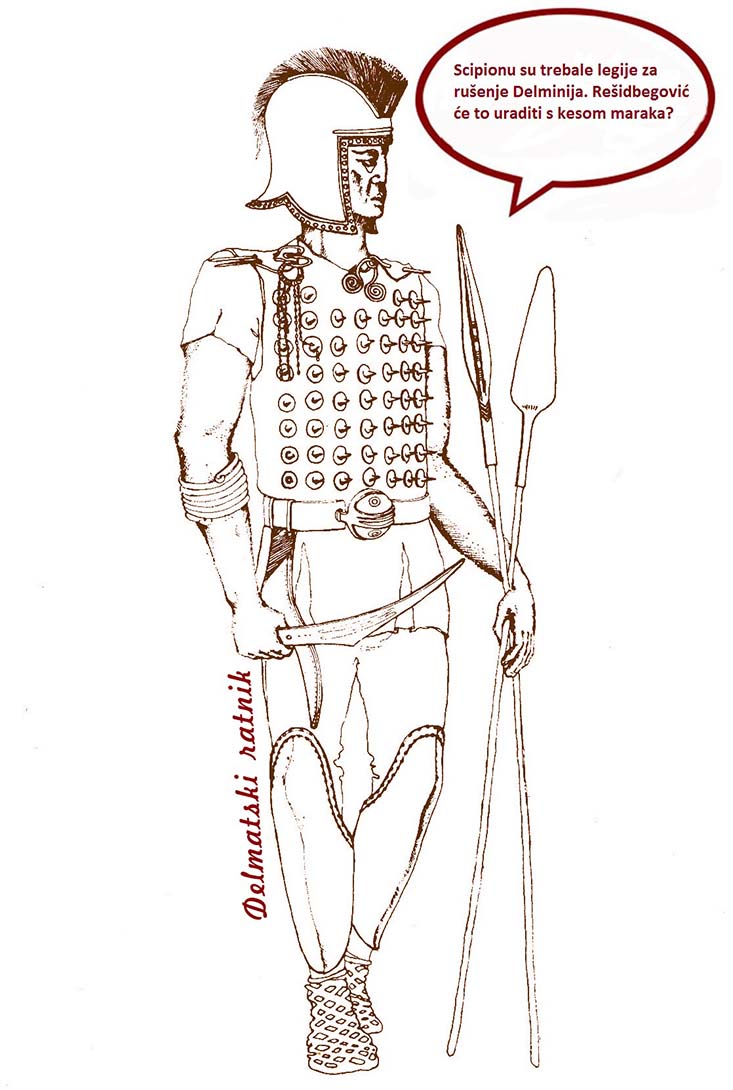 Delminij (Δελμίνιον, Delminium, Duvno) najpoznatiji je toponim iz predrimskoga i rimskoga doba u Hercegovini. Riječ je o naselju s tvrđavom koje se smatra glavnim gradom starih Delmata, koji su baš po njemu dobili ime. Arheolozi su suglasni da se ostaci predrimskoga Delminija nalaze na brdu Libu (kota 1023 m) iznad Borčana, u Duvanjskom polju, kojih devet km sz. od Tomislavgrada. Od prvoga stoljeća razvio se rimski Delminij, današnji lokaliteti Crkvina i Karaula u Tomislavgradu. Ukratko, u svim svjetskim enciklopedijama, gomili monografija i stručnih članaka spominje se Delminij. Ali što vrijedi slavna prošlost u sukobu s novovjekim barbarima kada uz njih zveckaju šoldi, bruje bageri i miriše tamjan? Za dobar dio hercegovskih Epimeteja materijalni ostaci Delminija, jal na brdu jal u ravnici, hrpa su neprofitabilna kamenja. Prvo je stradao rimski Delminij. Na mjestu gdje je bio rimski hram i drugi objekti podignuto je groblje Karaula. A onda je na samome rimskome trgu (forumu), koji je istražio krajem 19. st. Carl Patsch, fra Mijo Čuić od 1924. počeo podizati crkvu. I propadoše na oltaru domovine jedini ostaci rimskoga foruma u Hercegovini i Bosni, s otvorenim trgom, vijećnicom, govornicom, uredima i zatvorom, s lijepo isklesanim kamenim kvaderima jer su se našli na krivome mjestu u krivo vrijeme. Završni udarac rimskome Delminiju zadao je u travnju 2011. fra Ante Pranjić, koji je došao na neočekivano destruktivnu ideju da istražene terme (banju) nedaleko od Franjevačkoga samostana Tomislavgrad, zatrpa pijeskom i zemljom. Zar nije zgodnije da se na mjestu antičkih termaizgradi parking, nu, zašto nije asfaltiran da misari i donatori ne hodaju oko crkve glibavih cipela?
